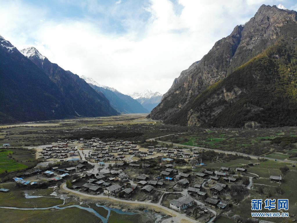 這是4月30日拍攝的林芝市工布江達縣境內的古村落錯高村(無人機照片)。新華社記者 孫瑞博 攝