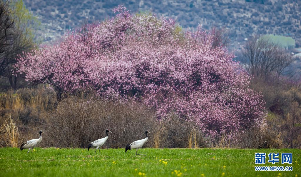 這是3月26日在林芝境內拍攝的黑頸鶴。新華社發(fā)(張寧 攝)