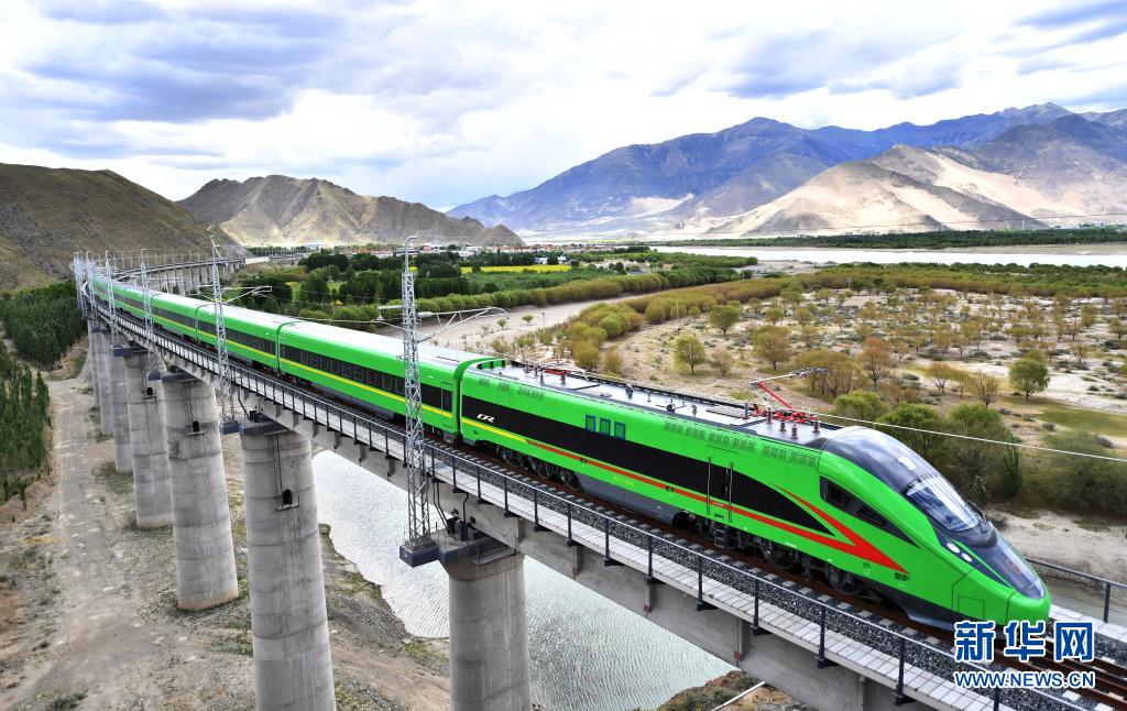 這是6月16日拍攝的行駛在拉林鐵路上的復興號列車。新華社記者 覺果 攝