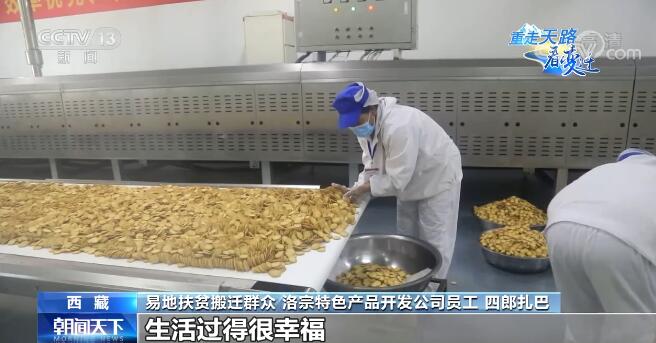 易地扶貧搬遷群眾 洛宗特色產(chǎn)品開(kāi)發(fā)公司員工 四郎扎巴:我這個(gè)車間主要負(fù)責(zé)洗青稞、青稞剝皮,我妻子在泡菜車間工作,她每月2400元,我們倆加起來(lái)一年也有6萬(wàn)多(元)收入,以前一年收入不到1萬(wàn)(元),搬過(guò)來(lái)以后在這邊實(shí)現(xiàn)就業(yè),收入各方面都很穩(wěn)定,生活過(guò)得很幸福。