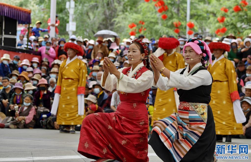 拉薩市堆龍德慶區馬鄉措麥村民間藏戲隊正在表演藏戲。(2021年6月12日攝) 新華社記者 張汝鋒 攝