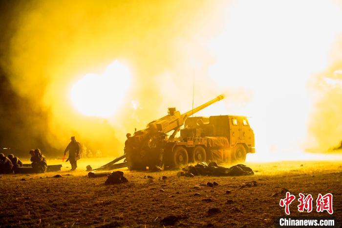 車(chē)載榴彈炮分隊(duì)夜間射擊。路建 攝