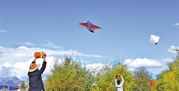 在拉薩放風箏不比誰放得高,也不比誰的風箏扎得漂亮,拉薩風箏的放飛技巧體現在可以“斗”,最后風箏斷線、風箏飄走者為敗。