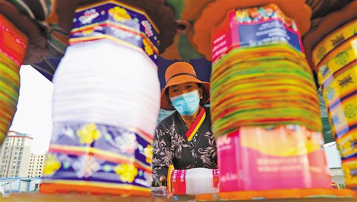 在拉薩河谷售賣風箏的攤位中,拉薩風箏制作技藝自治區級代表性傳承人普窮的生意最紅火,經常有客人一買就是幾十只風箏。