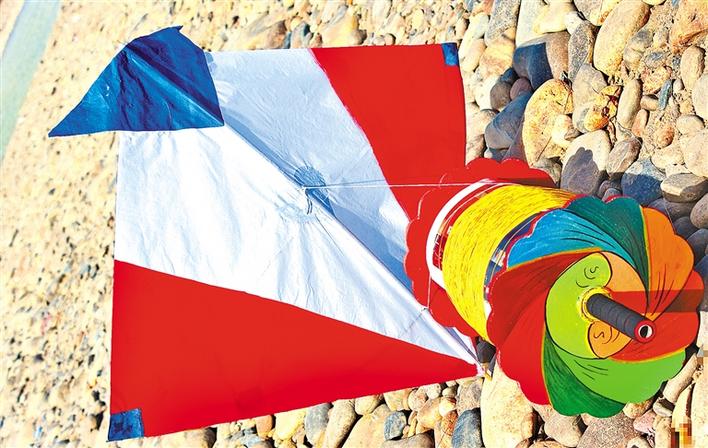 59歲的普窮制作風箏已經有近20年的經驗,對風箏器具也做了很多改良,他向記者展示攤位上自己制作的風箏線、線軸,對比多年前的制作圖片,在實用和審美方面都有了明顯改進。