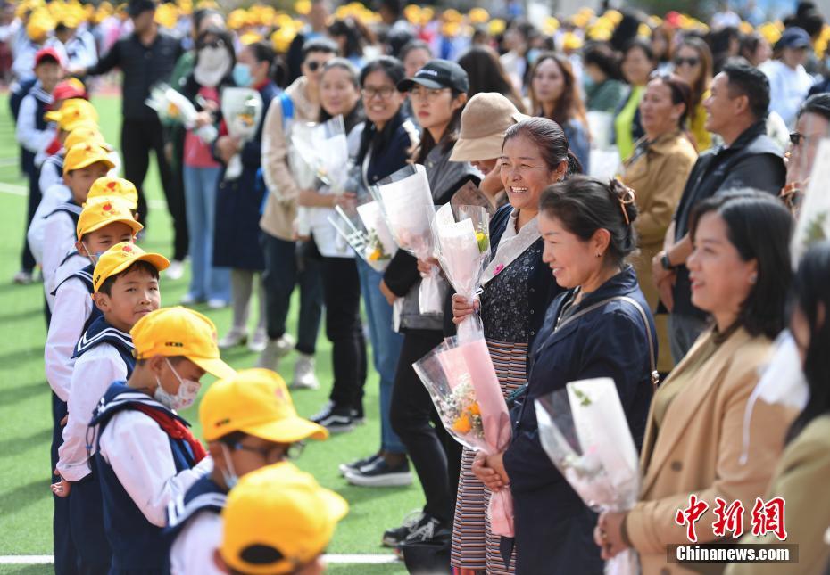 9月10日是第37個(gè)教師節(jié),西藏拉薩市第一小學(xué)舉行了以“譜團(tuán)結(jié)新篇 育桃李芬芳 感教師恩情”為主題的慶?;顒?dòng)。學(xué)生以敬禮、獻(xiàn)花、擁抱等方式,表達(dá)對(duì)老師的感恩之情。中新社記者 貢嘎來(lái)松 攝
