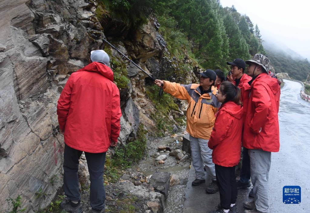 9月7日,在西藏日喀則市一處山體,中科院地理科學(xué)與資源研究所客座教授李渝生(左二)和年輕的科考隊(duì)員分析地質(zhì)災(zāi)害問(wèn)題。新華社記者 杜剛 攝