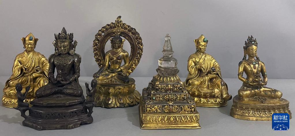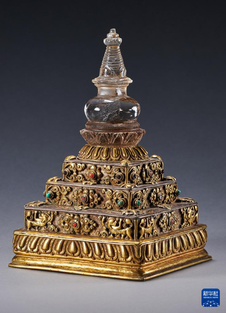 銅鎏金水晶嵌寶石供養塔(資料照片)。記者從9月26日召開的全國文物援藏工作電視電話會議上獲悉,國家文物局將從美國成功追索回國的12件文物藝術品整體劃撥西藏博物館。新華社發
