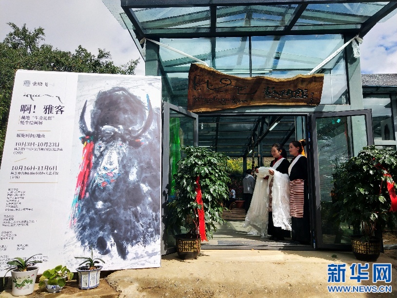 10月3日,在拉丁嘎村鄉村藝術館開幕的牦牛繪畫展。(受訪者供圖)