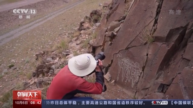 總臺記者 陳琴:現在我們是跟隨科考隊員來到了海拔4700米的加林山巖畫這么一個分布區域,這里的位置就是在尼瑪縣榮瑪鄉依布茶卡鹽湖的旁邊,我們看見科考隊員正在對這幅巖畫進行登記和記錄。