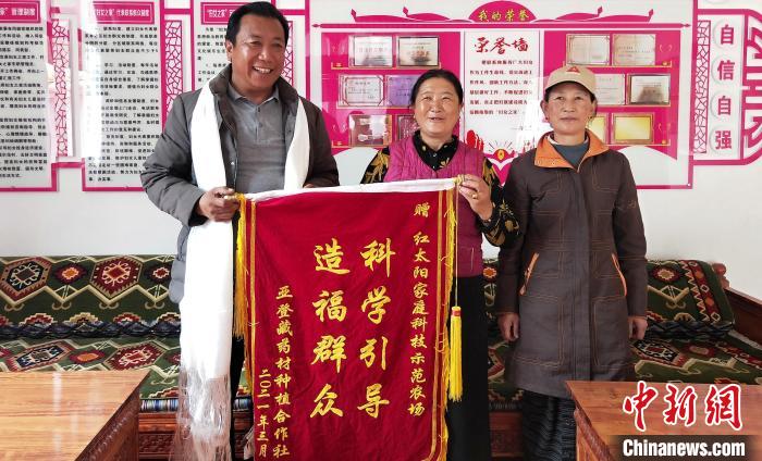 圖為基層合作社負(fù)責(zé)人向米林家庭農(nóng)場贈送錦旗。平措旺青供圖