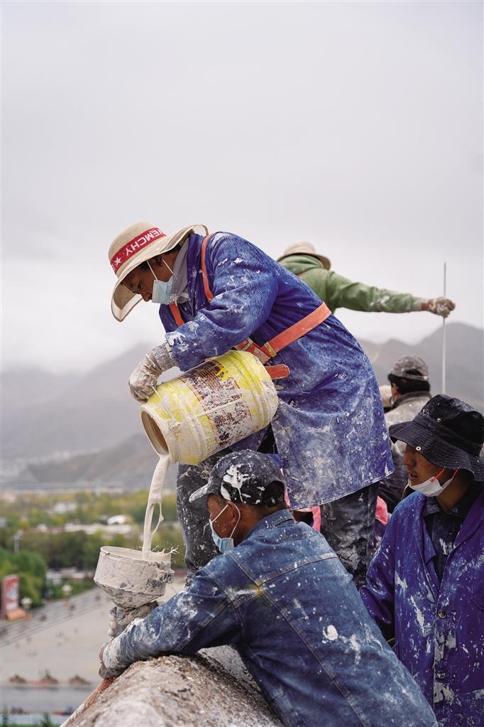 隨著布達拉宮“粉刷季”開始,很多市民群眾自發前往布達拉宮,加入“粉刷大軍”的隊伍。
