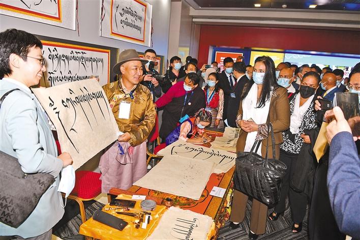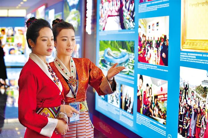 一幅幅精美絕倫的照片、一幀幀生動直觀的視頻畫面、一個個獨特壯觀的實物模型、一次次活潑有趣的互動展示,全面、立體、生動地向中外嘉賓展示了西藏和平解放70年來經(jīng)濟社會發(fā)展的歷史性成就,展示了中國共產黨團結帶領西藏各族人民創(chuàng)造了彪炳千秋、利澤萬代、亙古未有的歷史功績。