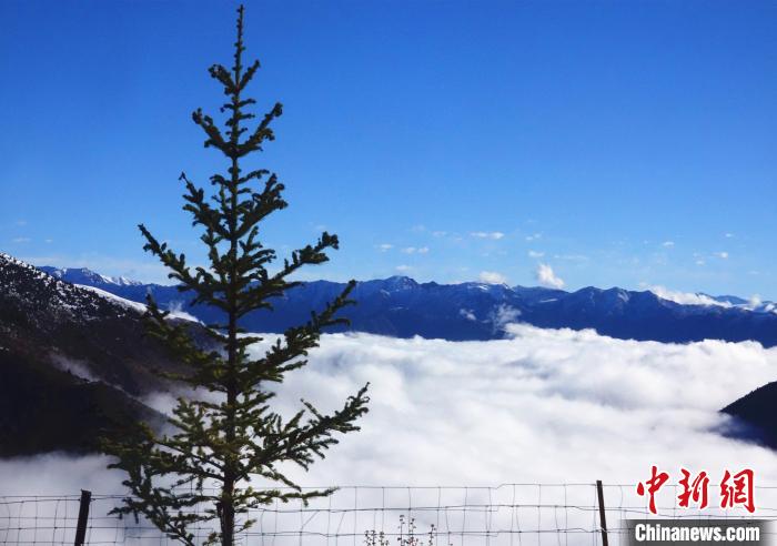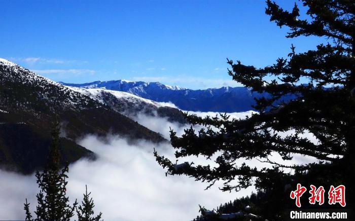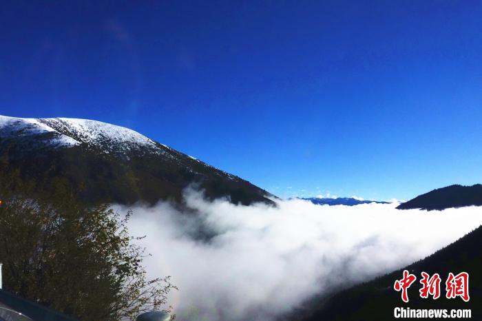 10月23日,西藏自治區察雅縣吉塘鎮出現壯美的云海景觀,山間云海與皚皚雪山交相輝映,宛入仙境。冉文娟 攝