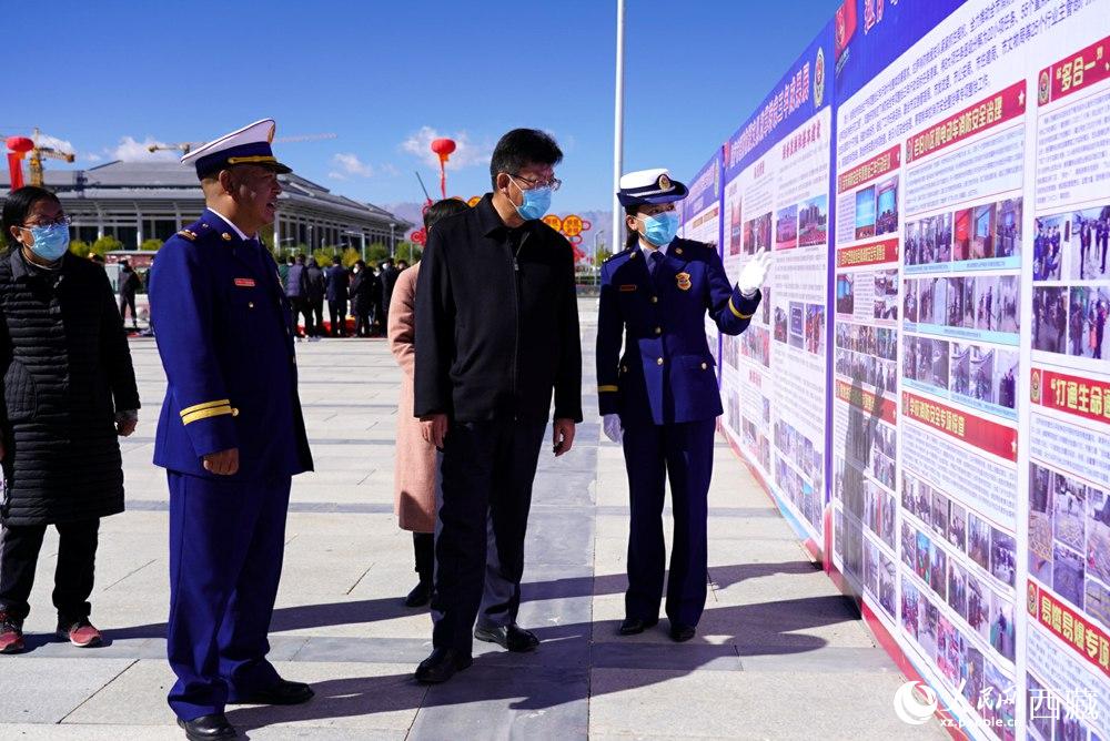 參觀拉薩市消防救援隊(duì)伍改制轉(zhuǎn)隸三周年成果展。人民網(wǎng) 次仁羅布攝