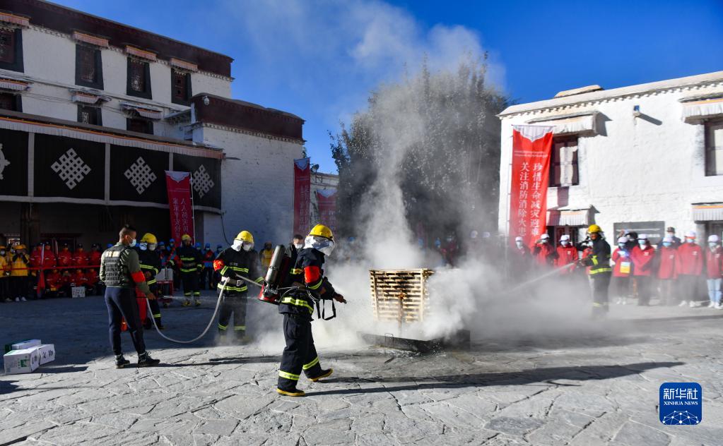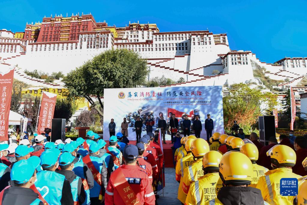 11月4日拍攝的西藏自治區2021年“119”消防宣傳月活動啟動儀式現場。新華社記者 晉美多吉 攝