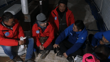 夜晚,海拔5300米的宿營地,大家睡帳篷打地鋪,吃著方便面,熱火朝天地總結一天的工作,做著第二天的規劃。