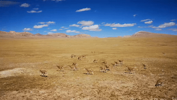 羌塘草原,平均海拔超過4700米。由于自然條件惡劣,這里被稱為“人類生命的禁區”,但卻是野生動物的樂園。記者穿過羌塘草原,路遇一群藏羚羊。新華社記者 董琳娜 攝
