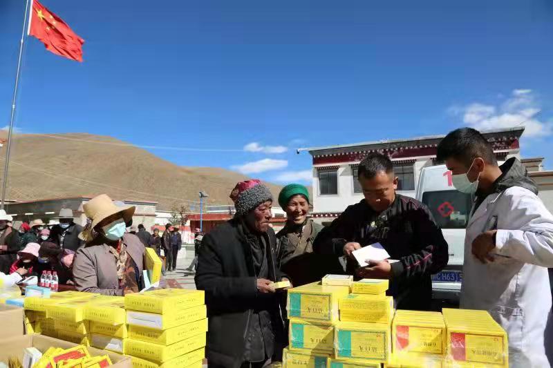 在加麻鄉免費義診活動現場,奇正藏藥山南分區也給予了大力的支持和幫助,帶來4萬多元的藏藥,包括護膝和護腰等免費發放給當地農牧民群眾。