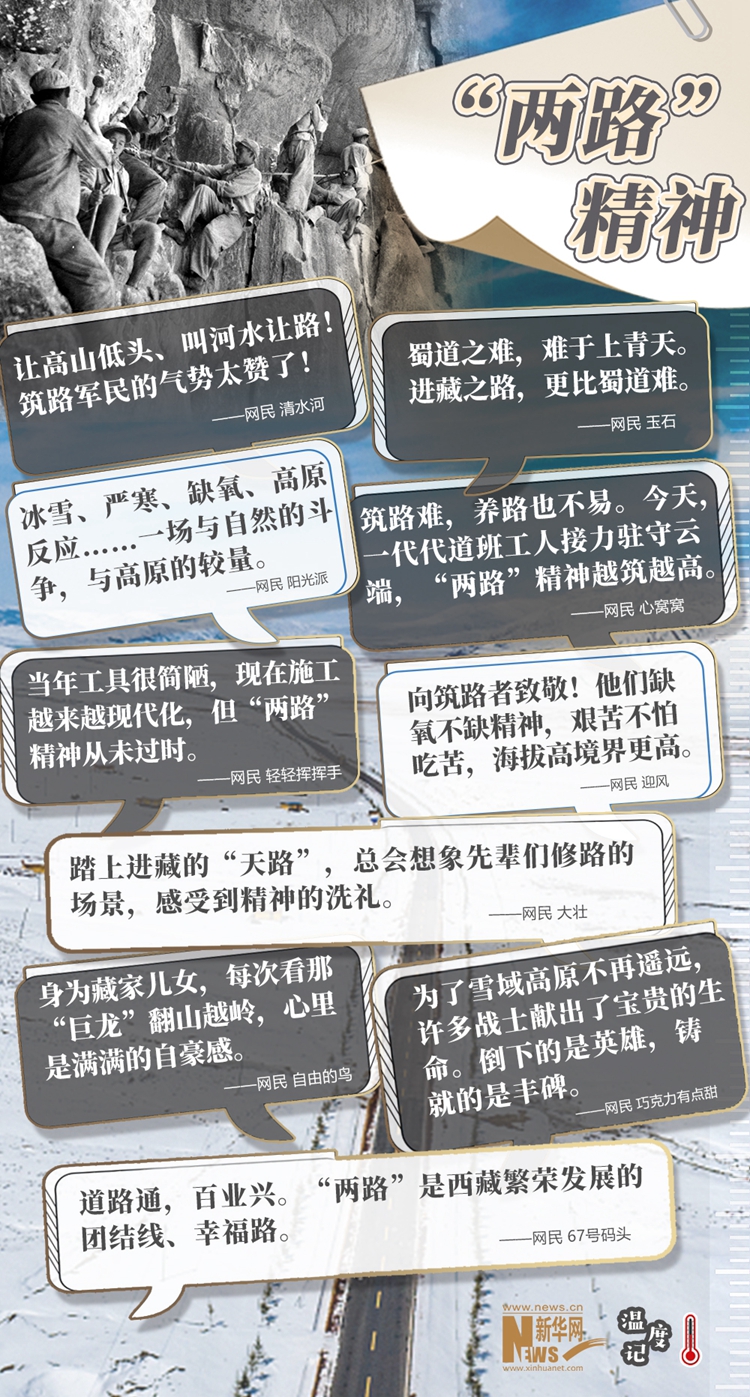 “天路”巍峨,精神閃光。當雪域高原換了人間,新一代建設者正接過接力棒,在新時代續寫著新的傳奇?!敖裉?,一代代道班工人接力駐守云端,‘兩路’精神越筑越高”,正如網民所說,無論過去、現在和將來,“兩路”精神都是西藏各族人民建設幸福家園的力量源泉和精神動力,也必將激勵中華兒女為了更加美好的明天繼續奮斗、前行。(文字:馬若虎 海報設計:王曄)
