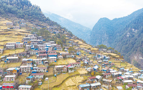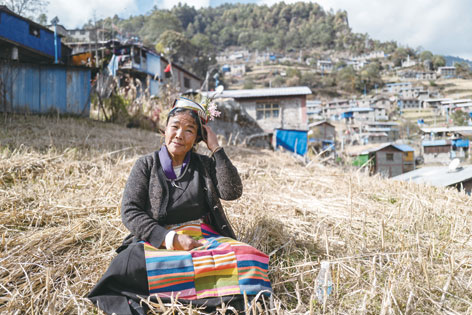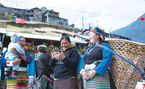 陳塘鎮的夏爾巴婦女在村頭開心聊天(11月24日攝)。普布扎西、格桑邊覺、孫瑞博攝