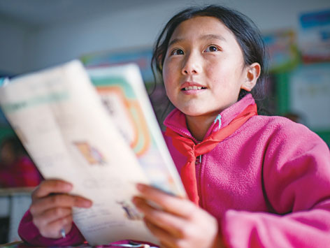 陳塘鎮小學三年級學生旺姆在讀課文(11月24日攝)。 普布扎西、格桑邊覺、孫瑞博攝