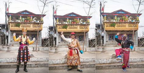 陳塘鎮藏戲演員在展示表演動作(11月25日攝)。普布扎西、格桑邊覺、孫瑞博攝