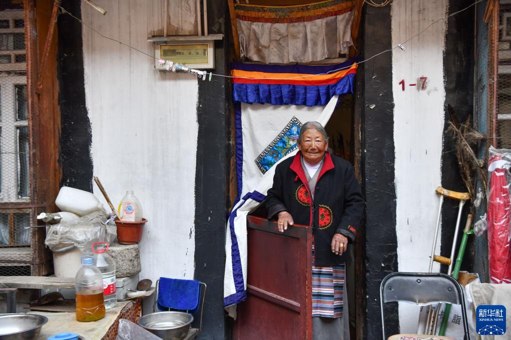 馬昌吉老人在八廓街老城區的家門口(12月7日攝)。新華社記者 晉美多吉 攝