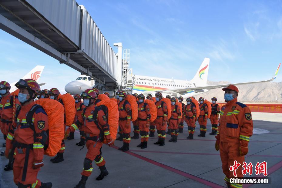 1月20日,西藏自治區(qū)消防總隊(duì)在拉薩貢嘎國(guó)際機(jī)場(chǎng)開(kāi)展2022年跨區(qū)域地震災(zāi)害應(yīng)急救援力量投送拉動(dòng)演練。據(jù)悉,演練投送的裝備主要為個(gè)人72小時(shí)保障物資、通信器材和輕便型的相關(guān)救援器材。 中新社記者 貢嘎來(lái)松 攝