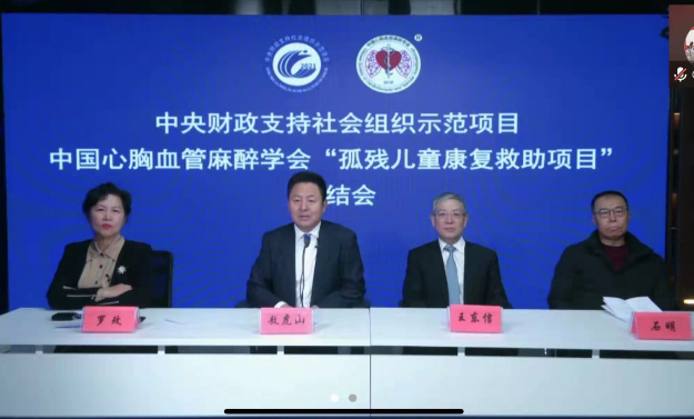 2022年1月26日,中國心胸血管麻醉學會孤殘兒童康復救助項目總結會通過線上線下相結合方式舉行。民政部兒童福利司兒童福利處處長李勇,中國醫學科學院阜外醫院麻醉科主任醫師、中國心胸血管麻醉學會秘書長敖虎山,國家兒童醫學中心主任、首都醫科大學附屬北京兒童醫院院長倪鑫,中國人民解放軍總醫院第七醫學中心附屬八一兒童醫院院長封志純等分別致辭,總結會由中國心胸血管麻醉學會孤殘兒童康復救助項目領隊羅玫主持。