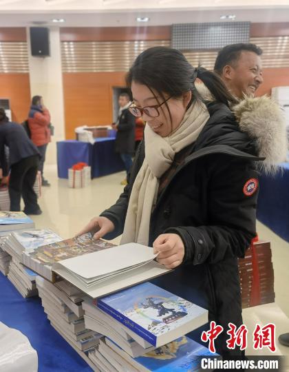 圖為《格薩爾》藏譯漢叢書首發儀式上讀者現場翻閱圖書?!≮w延 攝