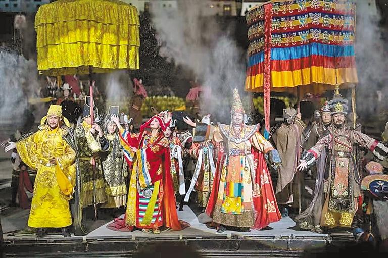 值得一提的是,為了努力應對疫情持續帶來的不利影響,《文成公主》實景劇積極試水“云演藝”,舉辦了多場以“足不出戶·云看文成”為主題的線上觀劇活動,各平臺總觀看量數十萬人次,有力助推了西藏非遺文化與民俗文化的傳承與傳播。