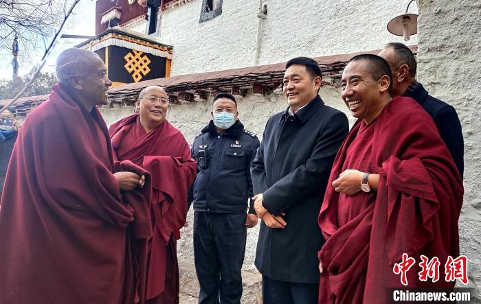 1月28日,調研組一行先后來到哲蚌寺、城關區雪堆白文教集團、城關區河壩林社區、色拉寺,看望慰問基層統戰干部、寺管會干部、駐寺派出所干警、消防和部隊官兵、寺廟僧人以及民營經濟人士等,并以現場察看、聽取匯報、座談交流的形式,詳細了解寺廟管理、僧尼教育、維護穩定、消防安全和民族團結進步創建等方面的工作。
