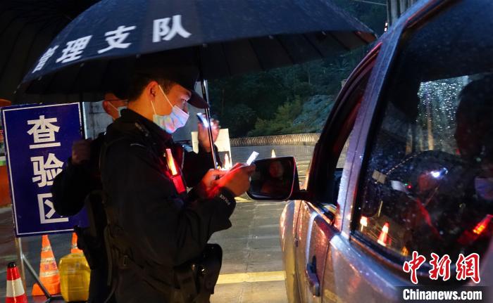 達國大橋檢查點民警正在檢查過往車輛。冉文娟 攝
