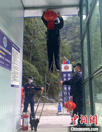 春節到來,民警把達國大橋檢查點裝扮一新。受訪者供圖
