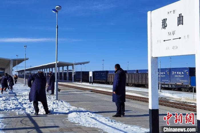 春節期間,旅客在海拔約4500米的那曲火車站乘車。拉薩車務段 供圖