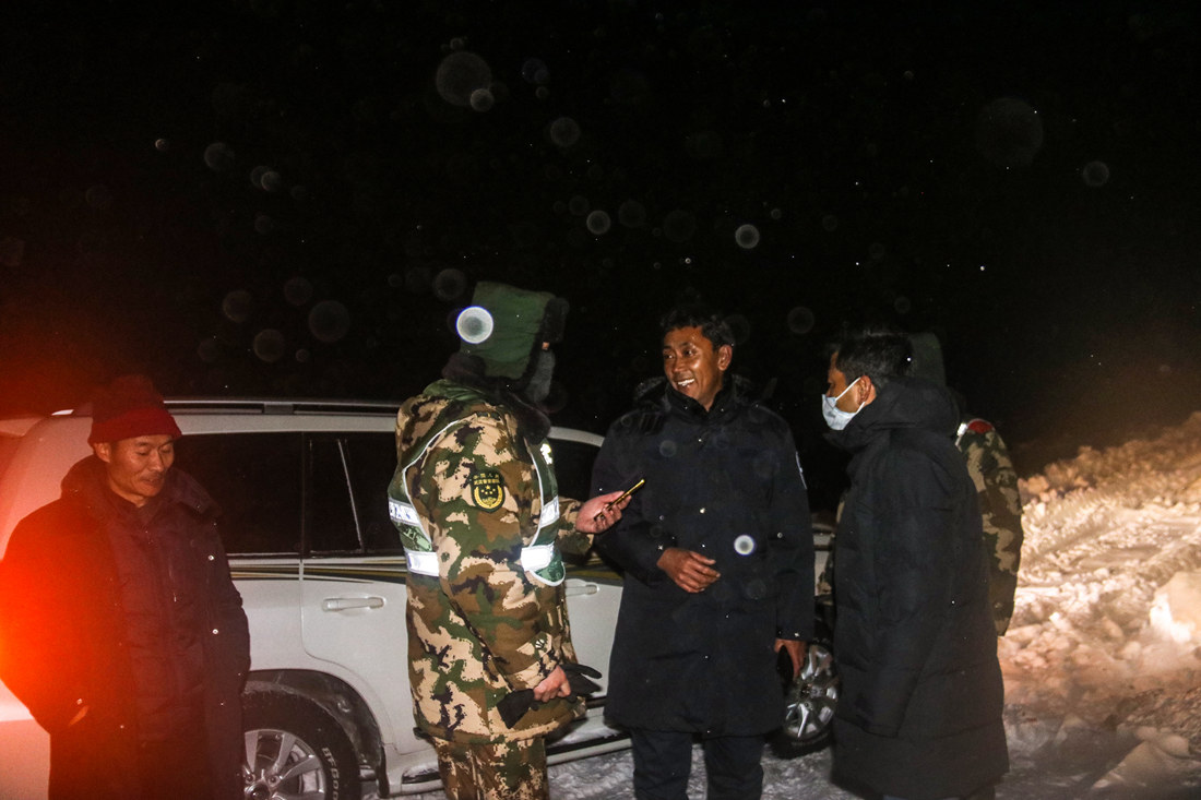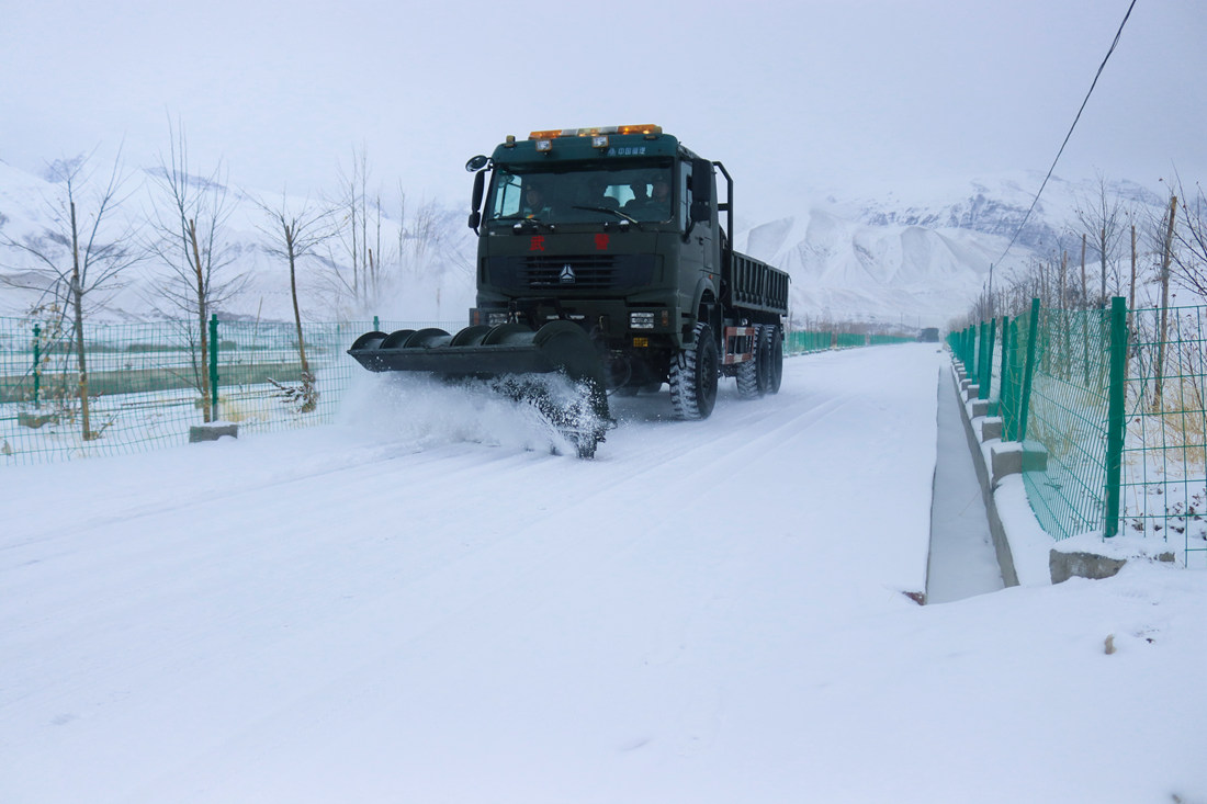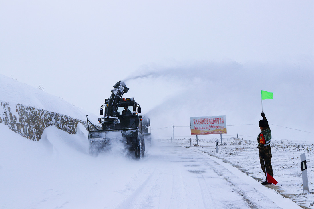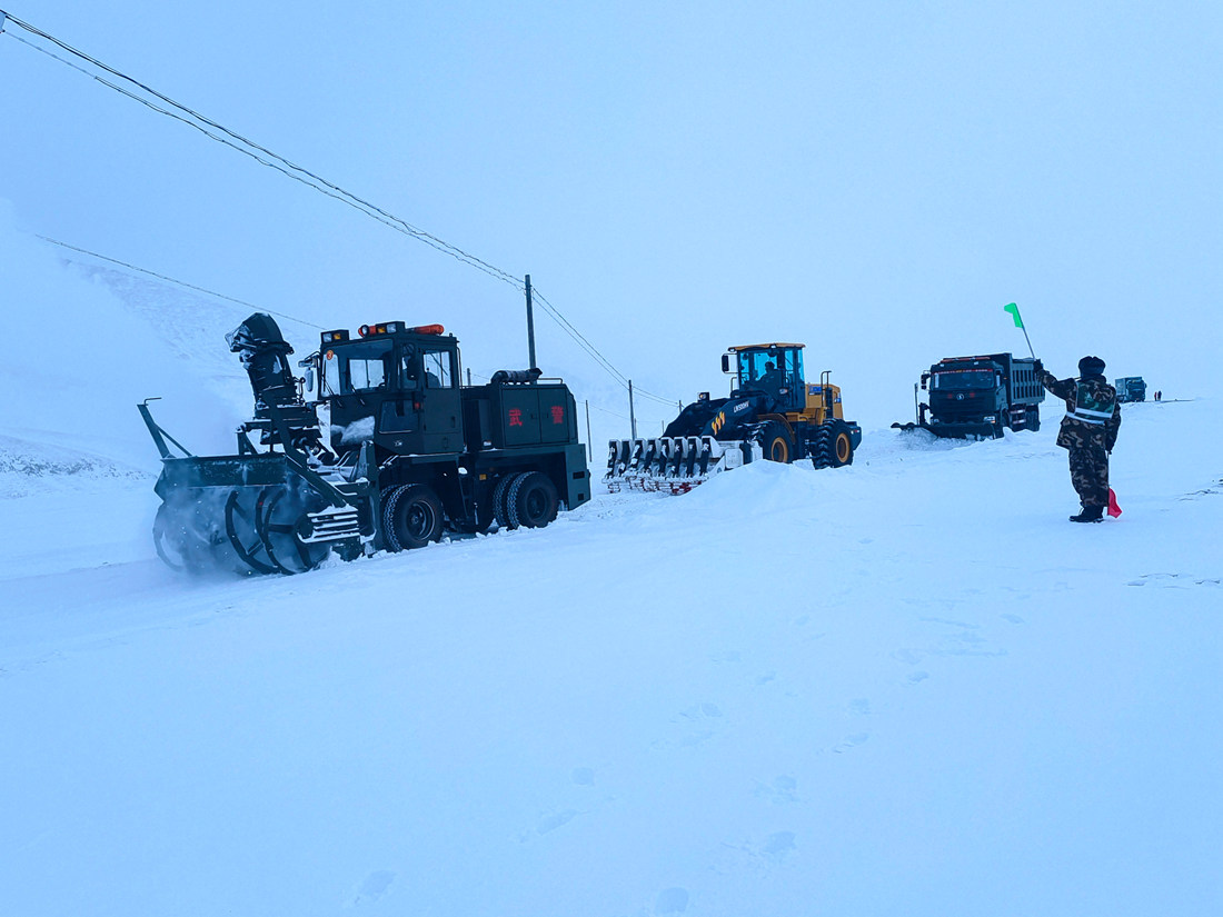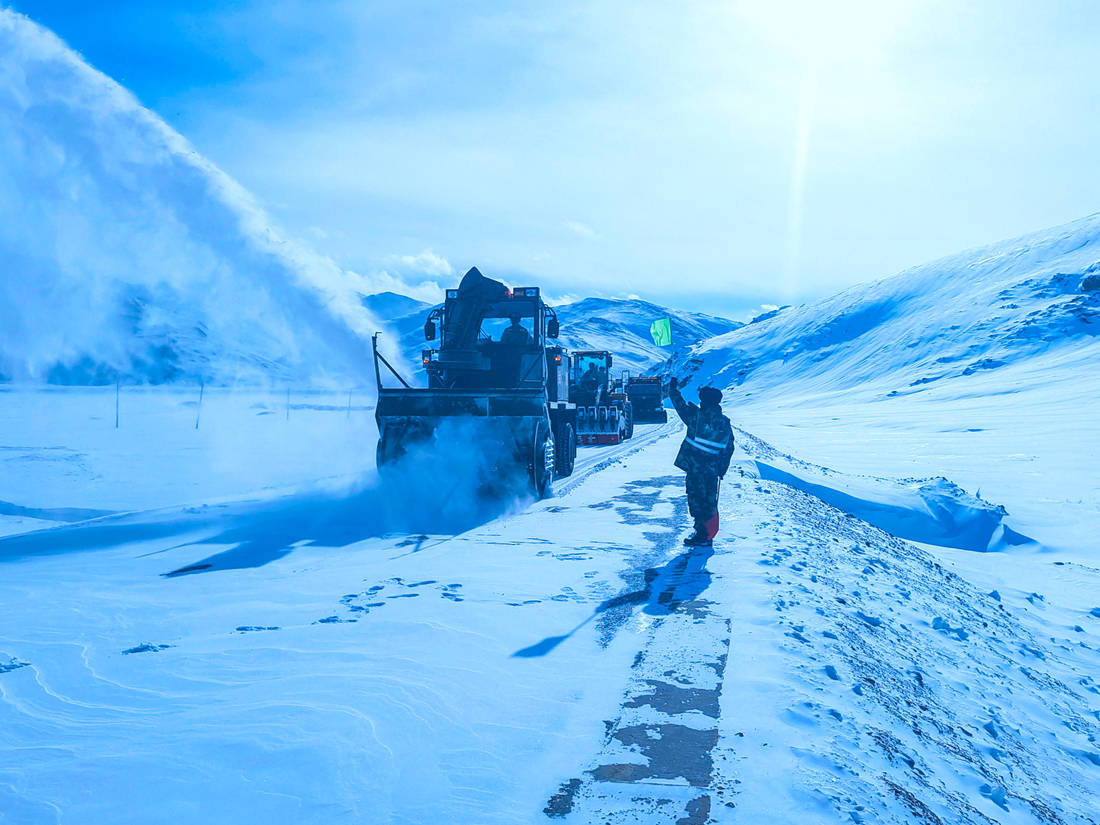 因?yàn)?zāi)害現(xiàn)場(chǎng)地處平均海拔4000多米以上海拔,持續(xù)降雪不斷,加之氣溫低至零下20多攝氏度,給整個(gè)道路搶通工作帶來了不少難度。為盡快清理路面積雪搶通道路,武警官兵采取“人歇機(jī)不停、分段搶通、先通后拓”的方法進(jìn)行全力搶通,克服了高寒缺氧及紫外線強(qiáng)烈等重重困難。