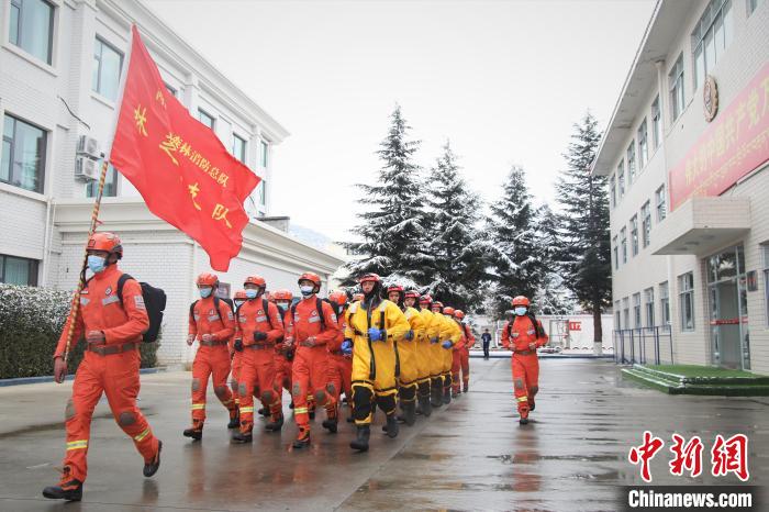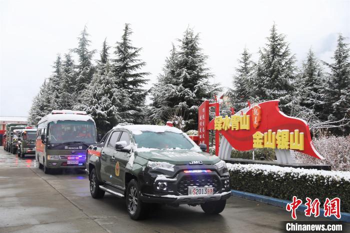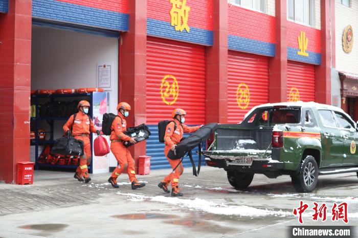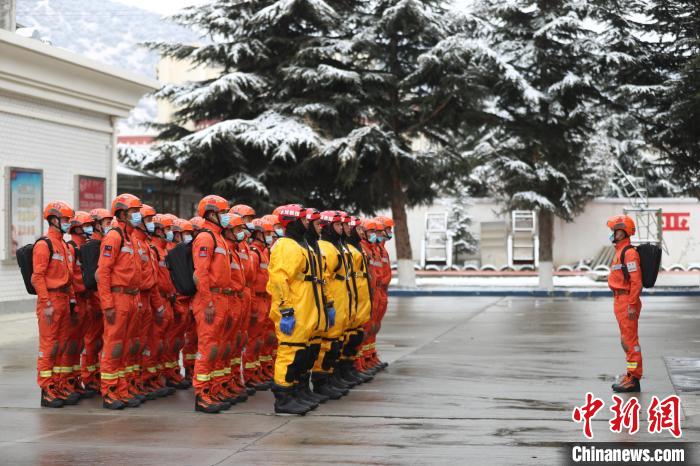 圖為消防員集結出發。索朗旺久 攝