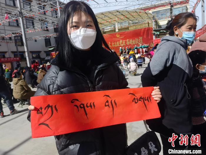 圖為青少年展示藏文對聯"扎西德勒"。 共青團西藏自治區委員會供圖