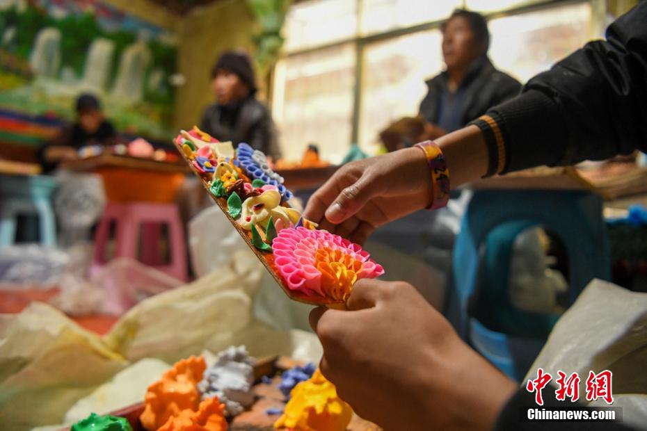 酥油花是古代藏傳佛教信眾因冬季沒有鮮花供佛而發明的替代品,如今已演變成藏歷新年年貨。貢嘎來松 攝