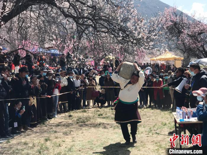 資料圖為林芝桃花旅游文化節期間舉行的“抱石頭”傳統體育比賽。冉文娟 攝