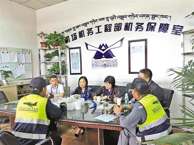 圖為廣州民航職業(yè)技術(shù)學(xué)院老師在民航西藏區(qū)局調(diào)研。