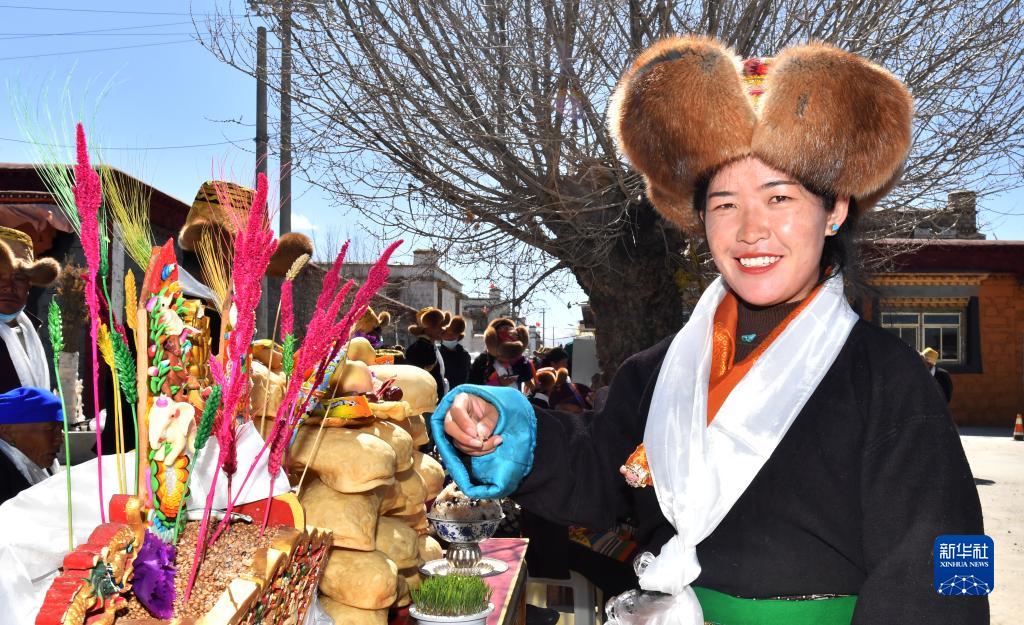 3月3日,西藏山南市貢嘎縣崗堆鎮(zhèn)群眾身著藏裝歡度藏歷水虎新年。新華社記者 覺(jué)果 攝