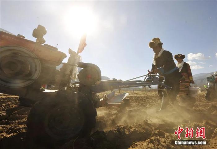 2015年3月16日,藏歷元月二十六,拉薩市堆龍德慶縣古榮鄉加入村村民的春耕儀式。根據藏族天文歷算,當日是一個適合春耕春播的良辰吉日。中新社記者 唐朝楊 攝
