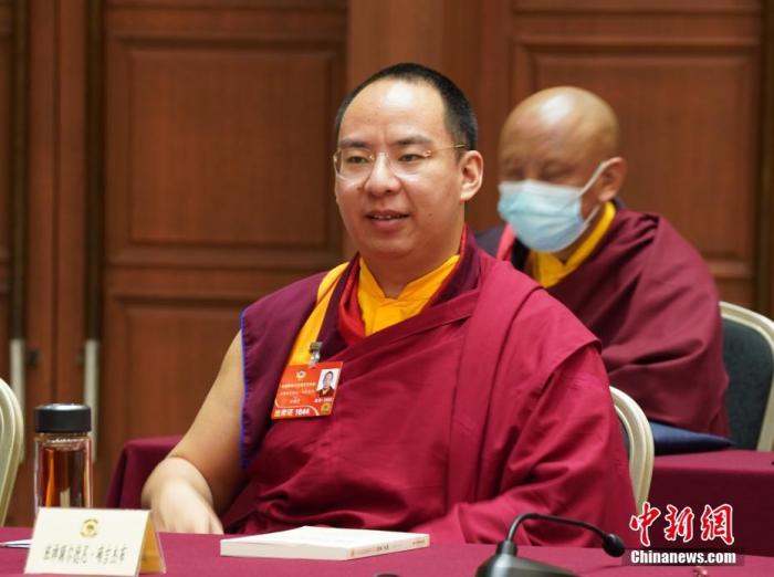 圖為3月9日,班禪額爾德尼·確吉杰布參加全國政協十三屆五次會議宗教界小組會議。中新社記者 李晗雪 攝