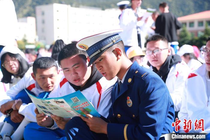 圖為林芝市森林消防支隊走進(jìn)校園宣傳防火知識。西繞拉翁 攝