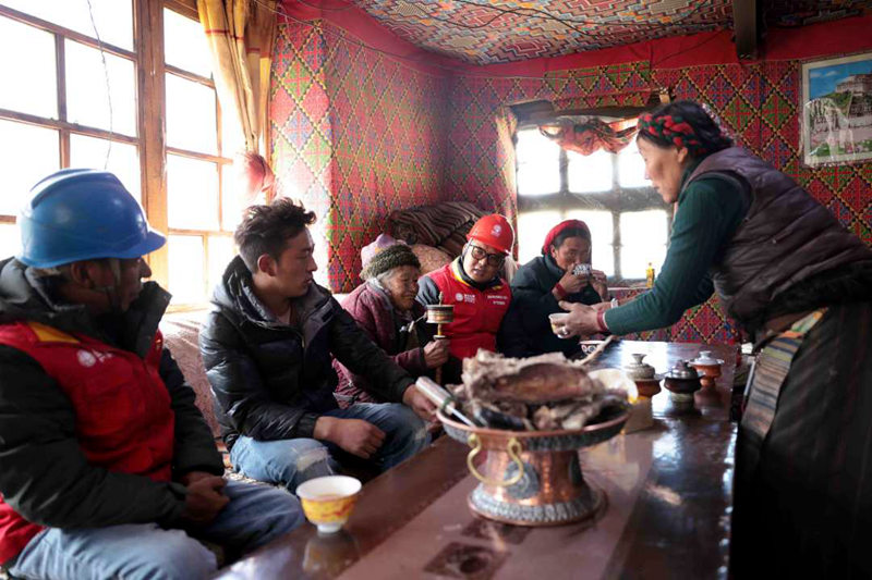 國網墨竹工卡縣供電公司員工與讓桌家人一起談論著。閆昱翰攝