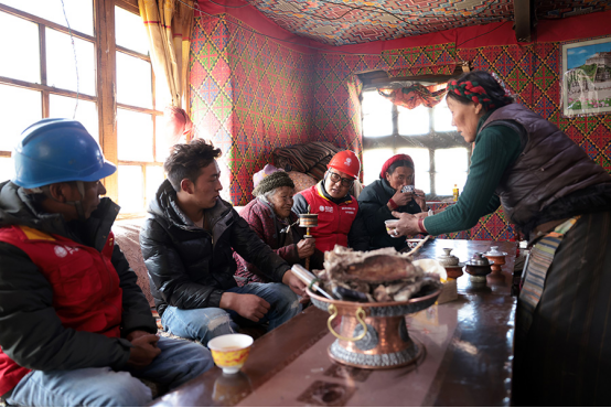 帳篷里大家圍坐在一起,喝著熱氣騰騰的酥油茶,熱情的讓卓不停地向服務(wù)隊隊員獻(xiàn)上脆脆的風(fēng)干肉,有說有笑。讓卓85歲的老奶奶瑪姆也湊起熱鬧聊家常,即使聽力有些下降,但聊到用電給生活帶來的改變時,老奶奶笑著用流利的藏語說“黨的政策好??!”