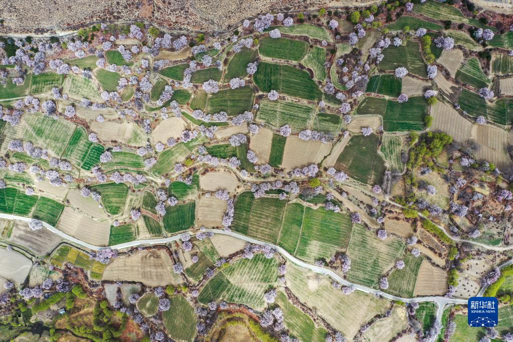 西藏林芝市巴宜區布久鄉朵當村桃花園(3月28日攝,無人機照片)。新華社記者 洛卓嘉措 攝