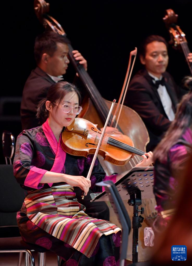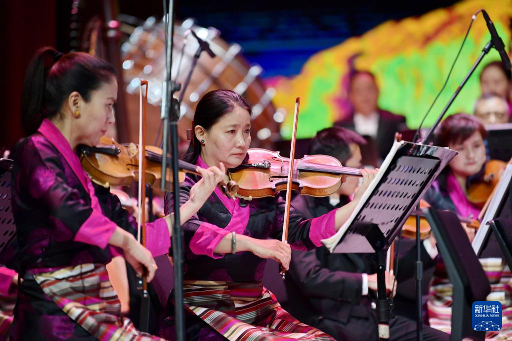 西藏愛樂樂團的藝術家在演奏交響樂《古格幻想》(4月3日攝)。新華社記者 張汝鋒 攝